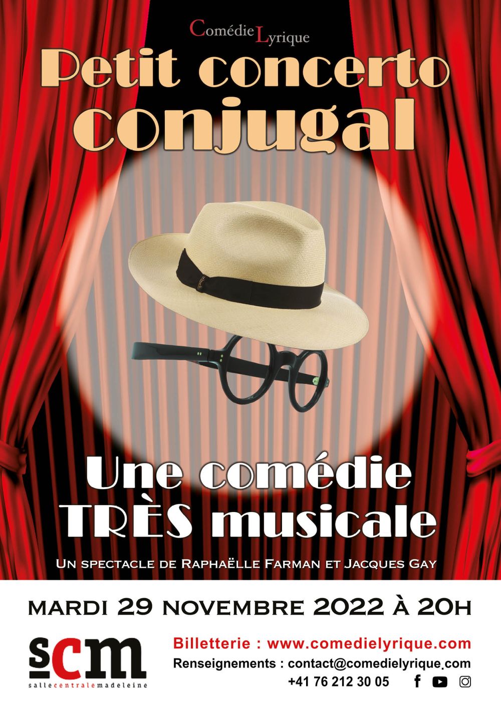 Prenez un mari, trois femmes, deux amants, ajoutez le génie et la légèreté de de l’esprit des Guitry, Labiche et Feydeau, saupoudrez le tout de musiques jubilatoires et entrainantes, versez dans un shaker et secouez bien fort ! Vous obtiendrez « Petit Concerto Conjugal », une comédie très musicale qui vous fait voyager tout en légèreté, fantaisie et humour.