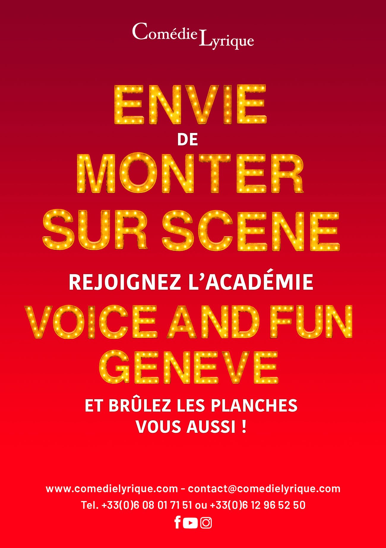 L’Académie Voice and Fun, basée à Genève, propose des cours de théâtre et de chant, dans tous les styles de musiques (aussi bien lyrique que jazz ou variété).